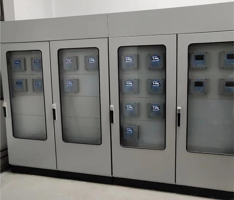 在此項目中,我司提供了一系列高質量原水、濾后水及出廠水水質在線檢測儀表,共計20余臺套。這些儀表包括超低量程濁度儀、非接觸式濁度儀、污泥濃度儀,電導率儀、ph儀、余氯儀、余臭氧儀、溶解氧儀等,為水廠運營提供了可靠的水質檢測數(shù)據(jù)支撐。下圖為水質儀表集中顯示電氣柜。
